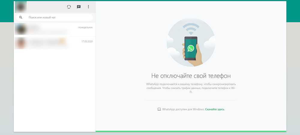 После успешной синхронизации в окне интернет-обозревателя появится вся Ваша история общения с телефона, а вновь поступающие месседжи начнут дублироваться синхронно на обоих устройствах. Обязательным условием данного решения является постоянная активность программы на мобильном устройстве. Об этом говорит и уведомление главного экрана вэб-версии – «Не отключайте телефон…». То есть, зайти в Ватсап с компьютера без телефона онлайн этим способом у Вас не выйдет.