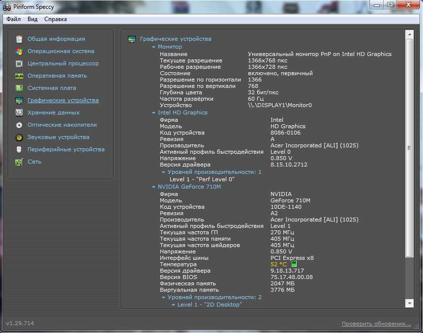 С видеокартами все примерно точно так же. Только помимо информации в спецификации, можно посмотреть зашитые в Bios устройства максимальные значения температуры.