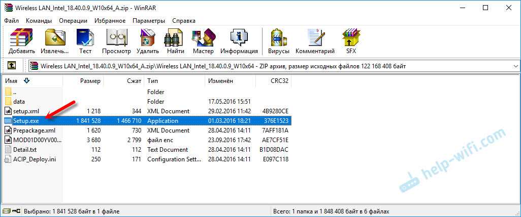 Процесс установки драйвера очень простой. Открываем скачанный с сайта Acer архив, находим в нем файл Setup.exe и запускаем его.