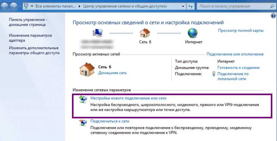 Далее нажмите на вкладку «Настройка нового подключения или сети».