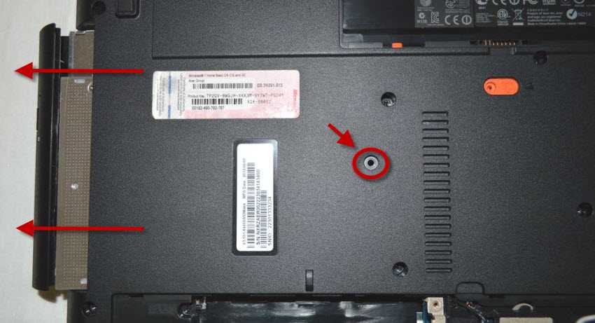 Чтобы извлечь привод из ноутбука, в большинстве случаев достаточно открутить несколько болтов с нижней крышки ноутбука, которыми закреплен привод.
