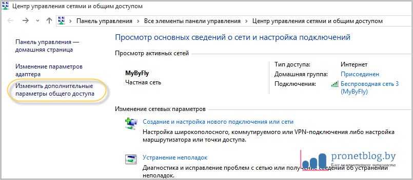 Там следуем в раздел «Изменить дополнительные параметры общего доступа»: