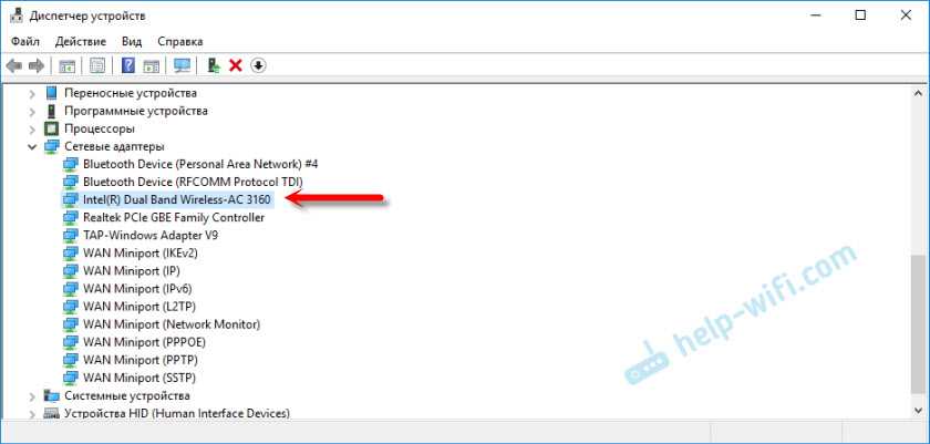 Как видите, в моем ноутбуке установлен Wi-Fi модуль Intel(R) Dual Band Wireless-AC 3160. Теперь мы знаем производителя и модель устройства. Но так как обычно основная цель это определение адаптера для поиска и установки драйверов, то этот способ нам не подходит.