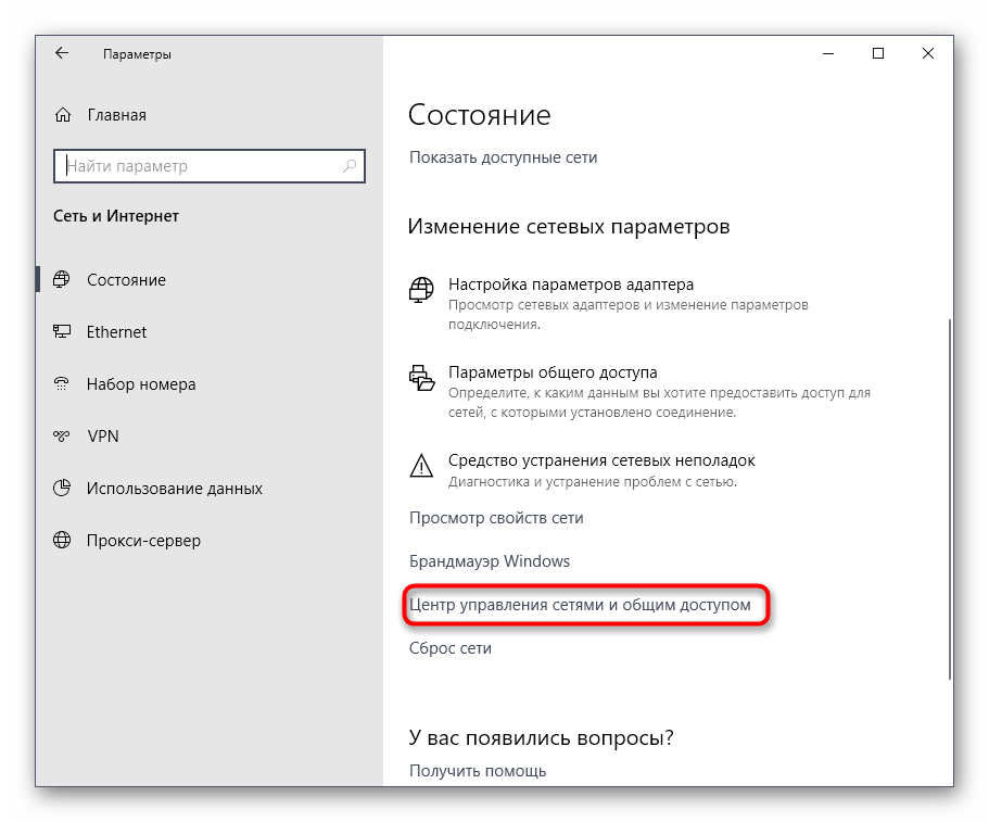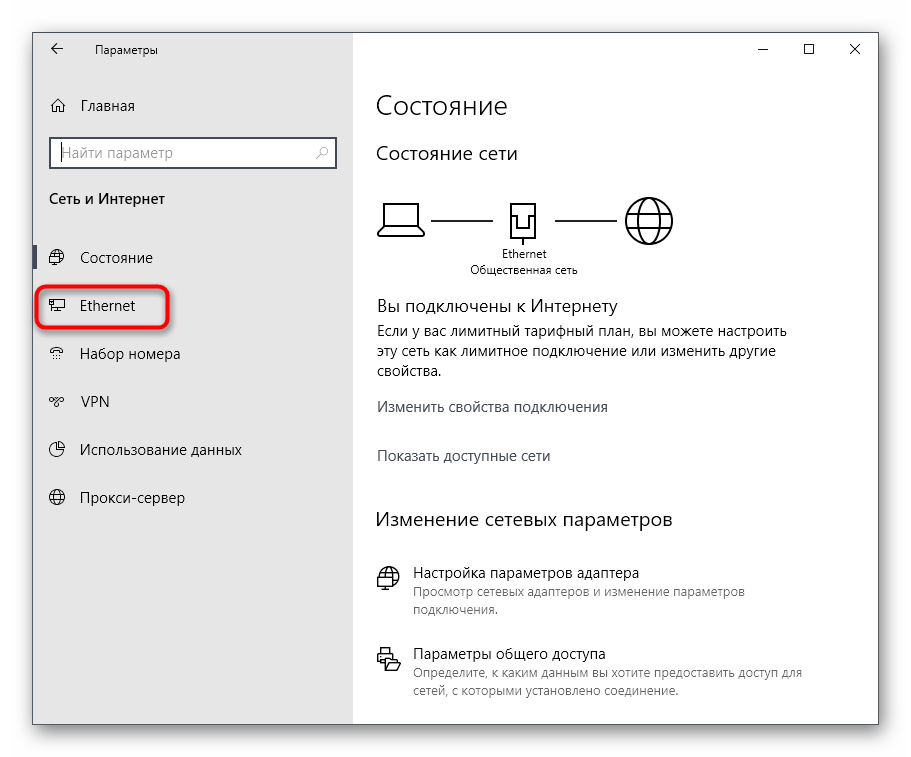 Здесь вам нужен раздел «Ethernet» или «Wi-Fi», что зависит от типа соединения с интернетом.