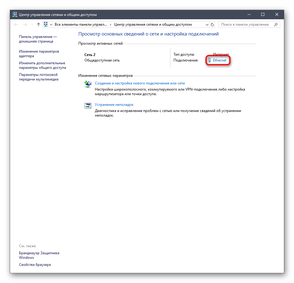 4. Если вы подключены к сети кабелем, будет показан Ethernet, а если по Wi-Fi — будет указан другой адаптер. Щелкните по нему два раза.