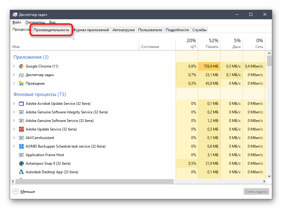 В открывшемся окне переместитесь на вкладку «Производительность».