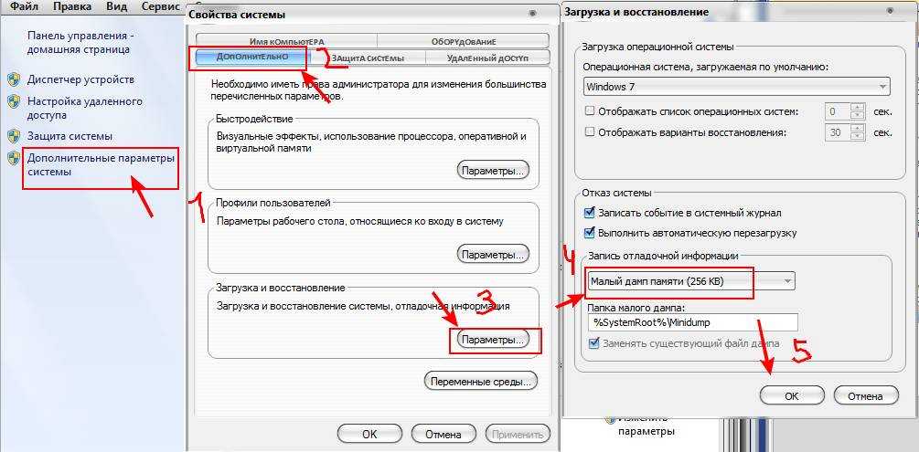 «Пуск — Панель управление («Пуск — Настройка — Панель управления» для маленьких пусков) — Система — Дополнительные параметры системы — Дополнительно — Загрузка и восстановление – Параметры — Отказ системы — Запись отладочной информации»