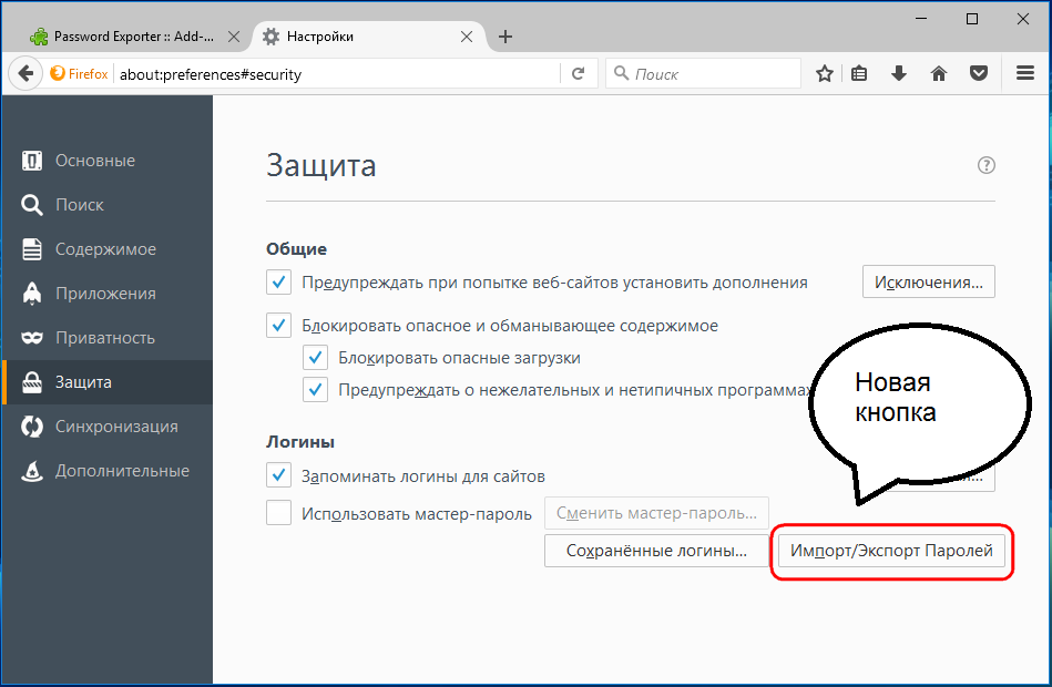 Экспорт паролей из Mozilla Firefox возможен в отдельный файл XML. Чтобы сделать это: