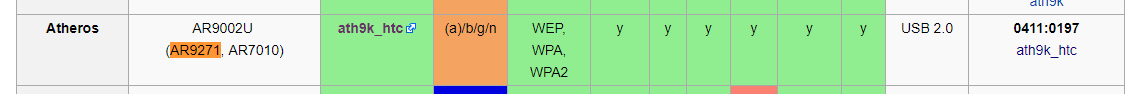 Возьмём другую карту – Alfa AWUS036NHA. У неё чипсет Atheros AR9271. Ищем по «AR9271»: