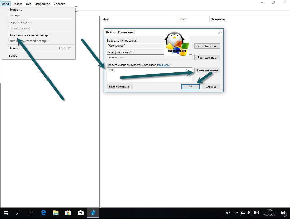 Из меню «Файл» выберите пункт «Подключить сетевой реестр», далее найдите нужный вам сервер.