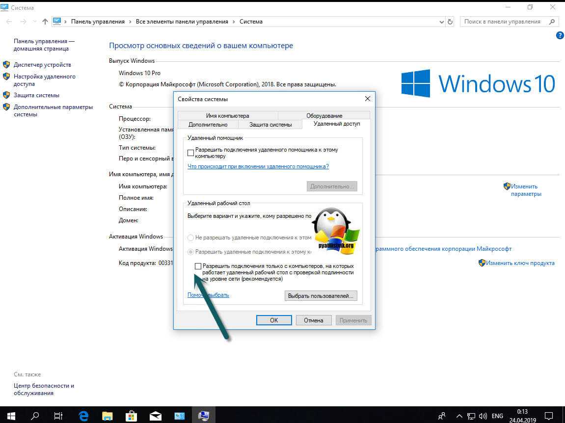 Данный метод выхода из ситуации я бы рассматривал, как быстрое, временное решение, до того, как вы установите обновления безопасности. Чтобы разрешить удаленное подключение к серверу и избегать ситуации, что произошла ошибка при проверке подлинности credssp, сделайте вот что. Откройте свойства моего компьютера, попав в систему, так же можно нажать одновременно WIN+Pause Breake или как вариант в командной строке ввести control /name Microsoft.System. В окне «Система» находим пункт меню «Настройка удаленного доступа»