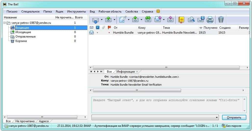 Если вы используете почту для обычной переписки с друзьями и родственниками или для регистрации в каком-нибудь сервисе, то для этих целей вам будет достаточно браузера. Но когда вы применяете почтовый ящик на крупной фирме и ежедневно обрабатываете сотни писем, то незаменимым для вас помощником станет почтовый клиент, установленный на ПК, где самым популярным является The Bat!