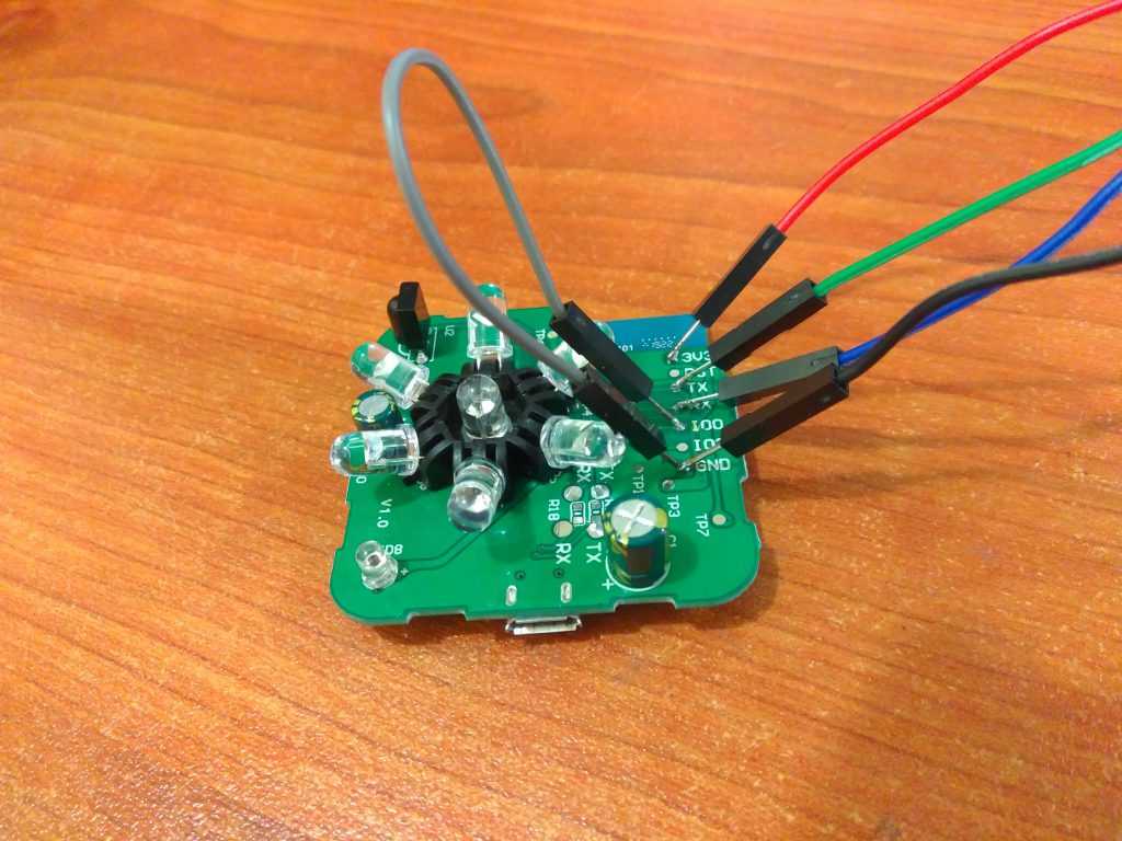 Подключаемся по стандартной схеме через usb to ttl адаптер, не забыв подключить GPIO0 к GND на время прошивки.