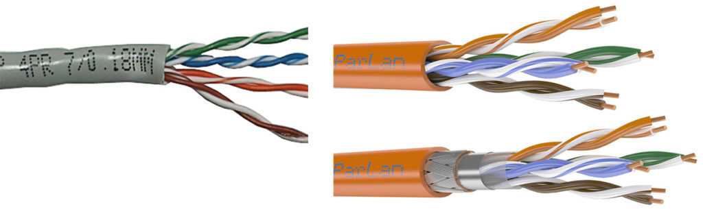 вокруг скрученных пар – определяют разновидности кабелей: