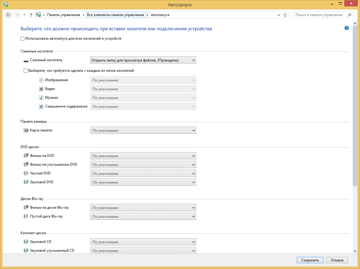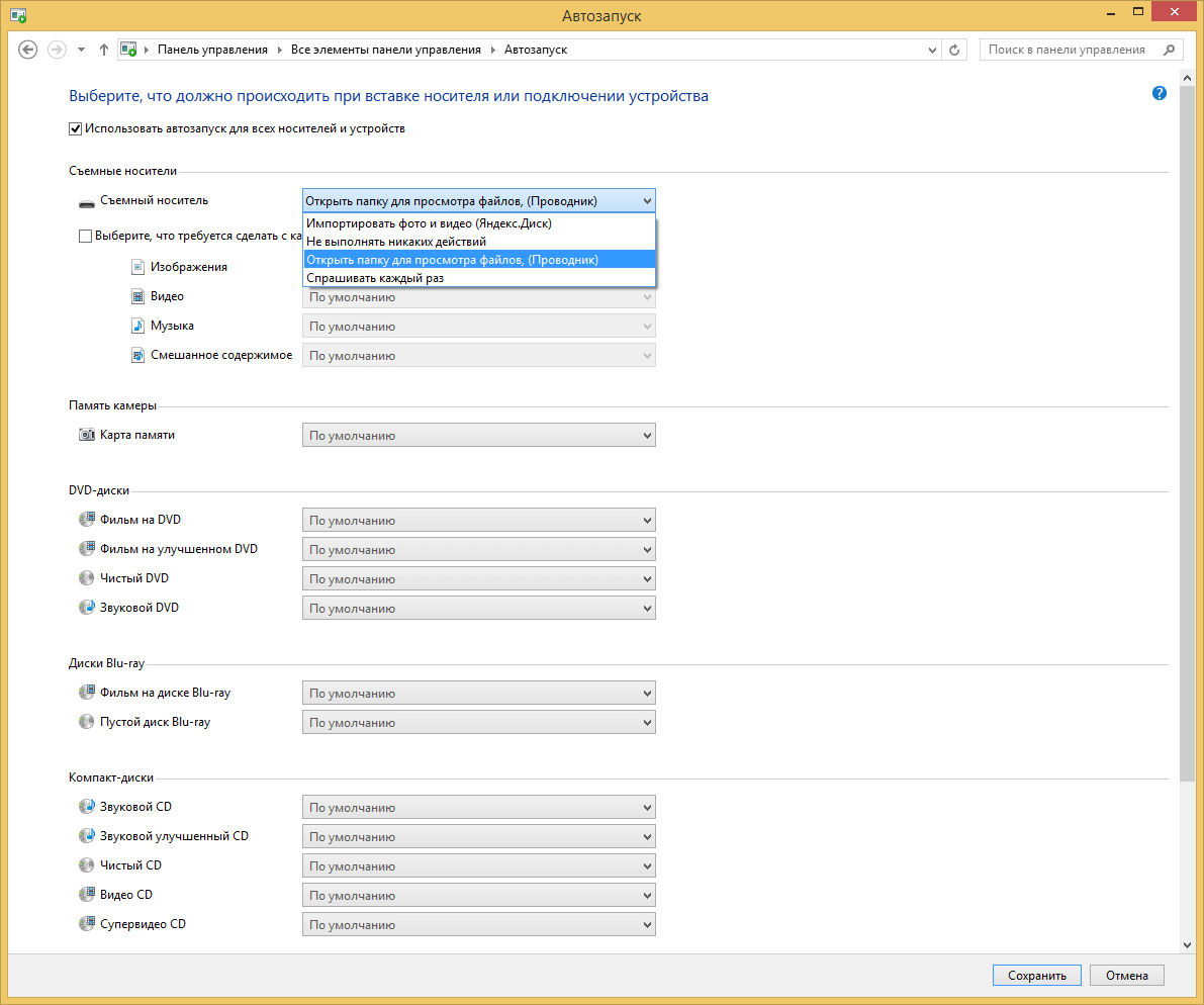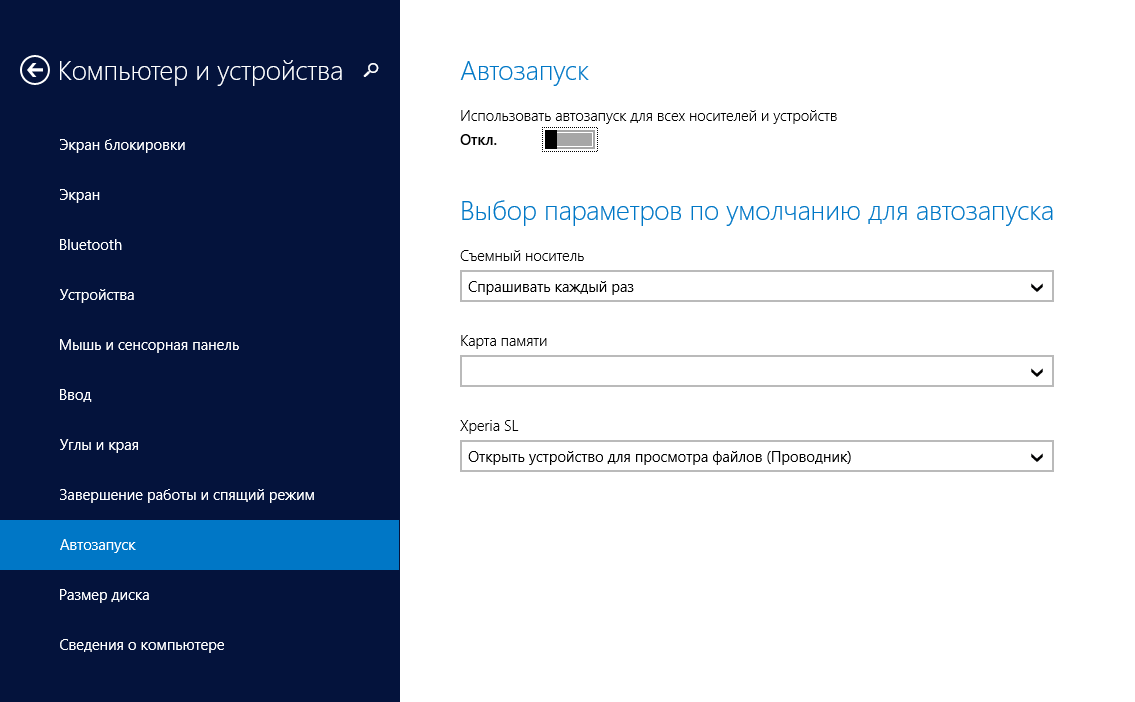 Autoplay в Windows 8 и 8.1