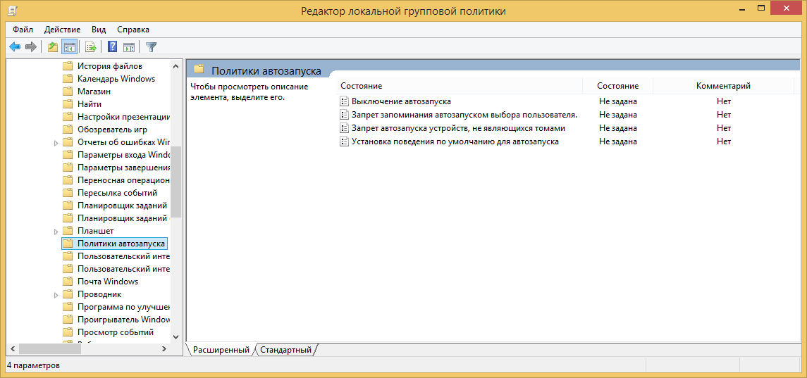 Отключить автозапуск флешки через редактор политик