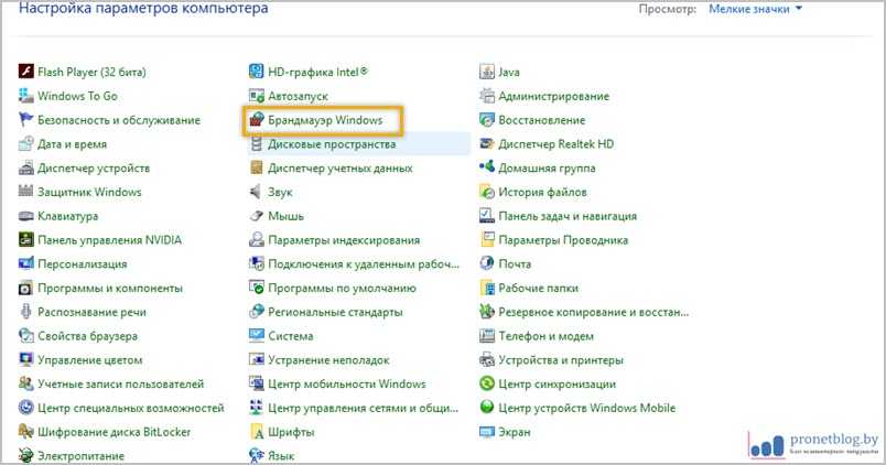 - «Пуск», переходим в «Панель управления», открываем «Система и Безопасность» и заходим в «Брандмауэр Windows» (Windows 7) ;