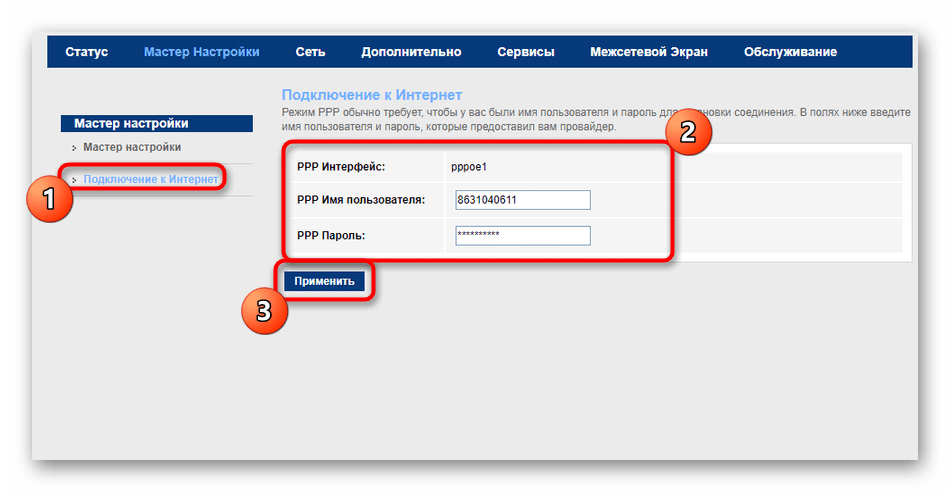 Следуйте отобразившимся на экране инструкциям, выбрав свой регион и поставщика интернет-услуг. Если провайдер был успешно определен, что происходит в большинстве случаев, никаких дополнительных действий выполнять не придется. Остается переместиться к разделу «Подключение к Интернет», чтобы там ввести авторизационные данные для подключения при использовании протокола PPPoE.