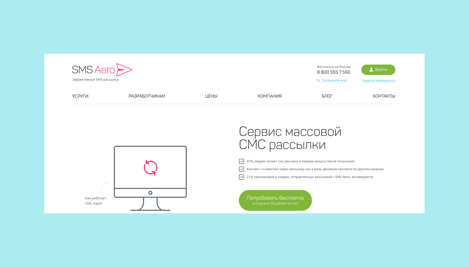 SMS.RU. Поможет организовать массовую рассылку СМС по своей клиентской базе. Оплата — только за доставленные СМС сообщения. А еще, это скорее всего самый дешевый сервис для рассылки — цены начинаются от 4 копеек за сообщение.