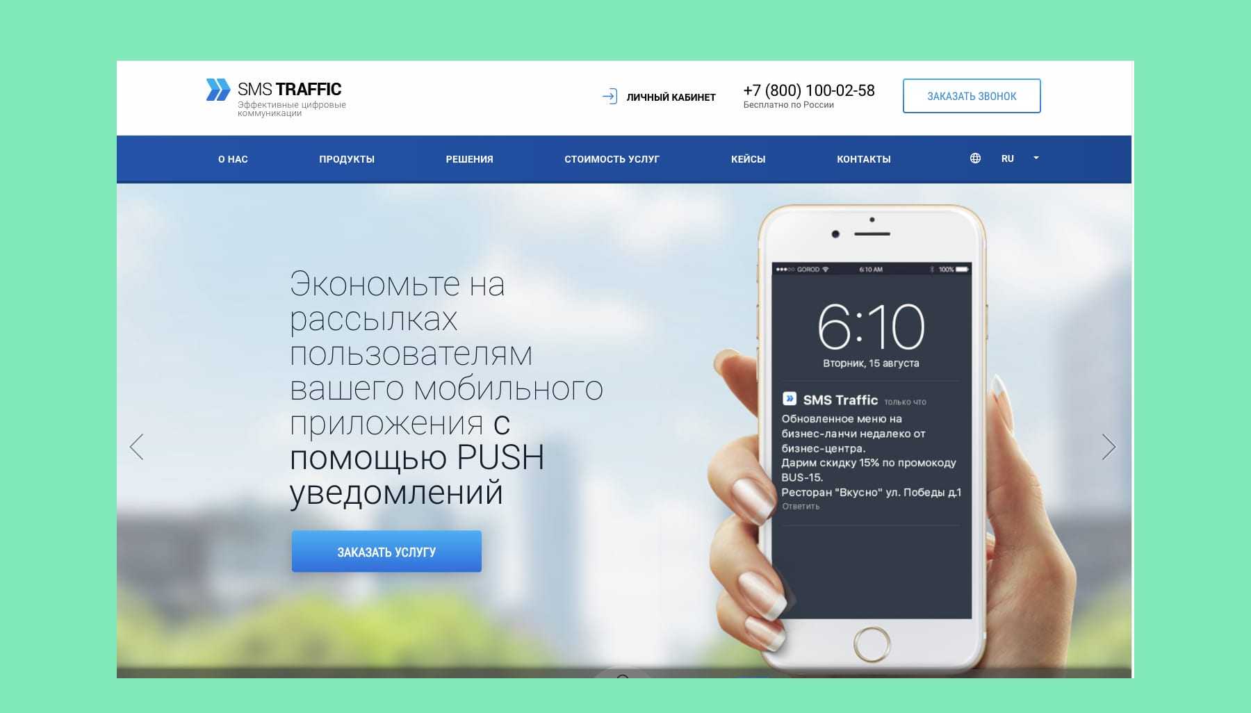 SMS Traffic. Есть отчеты о прохождении сообщений в реальном времени, сводная статистика, платный сервис коротких номеров, отложенная отправка, автоматическое удаление дубликатов, доставка сообщений по локальному времени и многое другое. Тарифы рассчитываются индивидуально под запросы каждого пользователя.