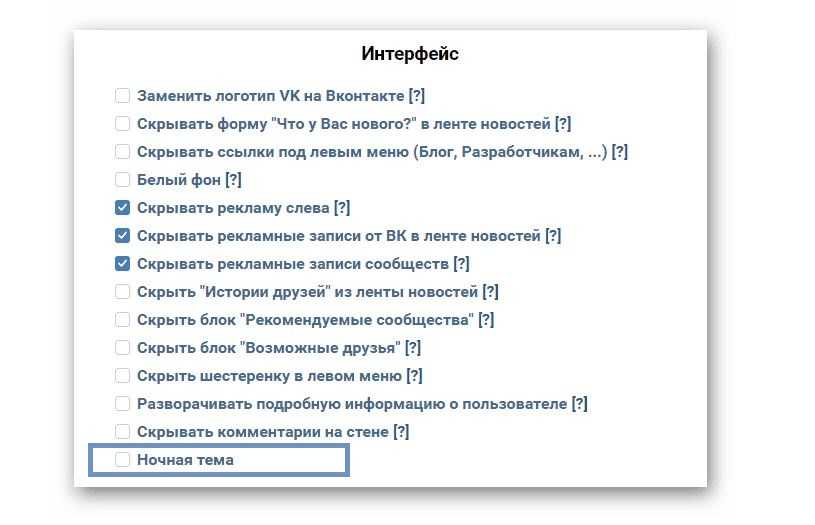 Каким образом в ВКонтакте сменить стандартную тему на чёрную на ПК