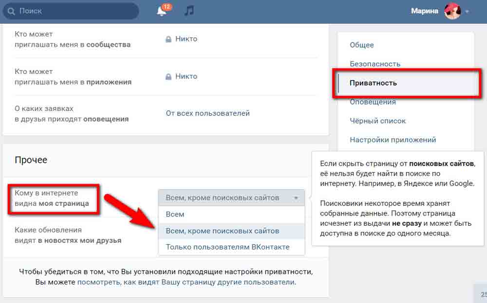 После «Редактировать» в списке стоит ссылка, по которой можно зайти в настройки в ВК. Раздел предназначен для отладки аккаунта: изменения пароля, параметров отображения пунктов меню или личной информации.