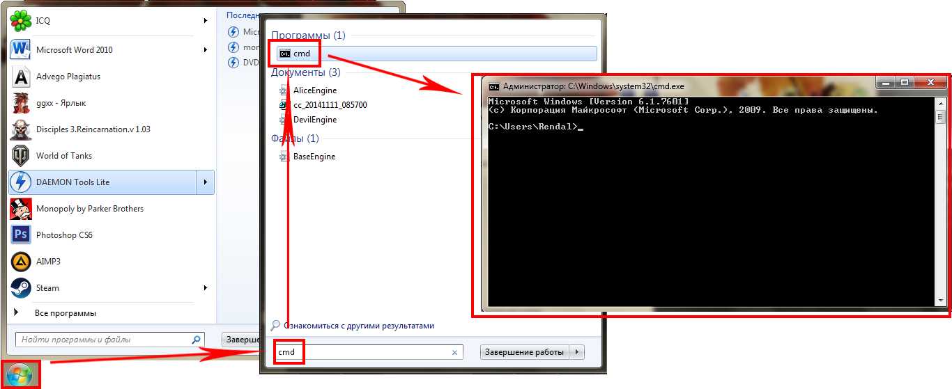 В меню «Пуск», в папке «Стандартные» также предусматривается возможность открытия командной строки.