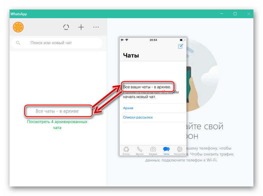 Обобщая, можно сказать, что принцип работы приложения WhatsApp в среде Windows заключается в дублировании происходящего в мобильном клиенте. Это касается и процедуры архивирования, поэтому в ряде случаев может быть удобнее и быстрее выполнить манипуляцию со смартфона, где установлен «главный» мессенджер. За счёт синхронизации эффект от выполнения в среде Android или iOS одной из предложенных выше в статье инструкций автоматически распространится на приложение-клиент ВатсАп для ПК.