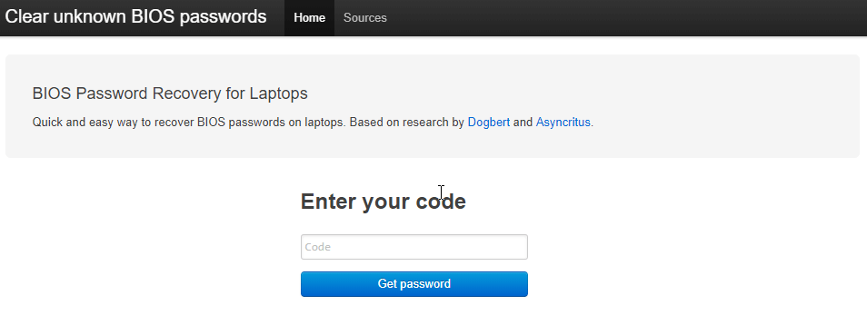 , введите код, который вы видели на экране BIOS, а затем нажмите кнопку Get password. Зная производителя ноутбука, запишите пароль, если их несколько, то запишите несколько один за другим.