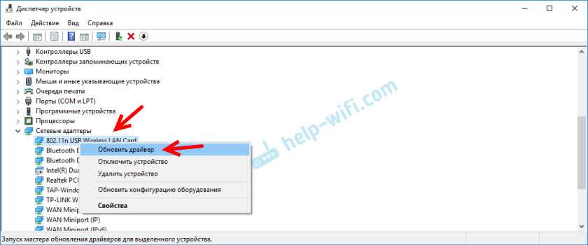 Обратите внимание! В некоторых случаях требуется сначала извлечь все файлы из архива с драйвером и только на следующем этапе приступать к установке. Потом останется выбрать сам адаптер правой кнопкой мыши, перейти к функции обновления программного обеспечения до последней версии