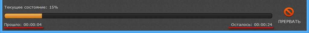 Здесь все просто. Как только выбрали настройки, нажимаем кнопку «СТАРТ». В зависимости от выбранных настроек и продолжительности видео скорость кодирования будет разной. Программа умеет считать, сколько времени осталось до окончания конвертации: