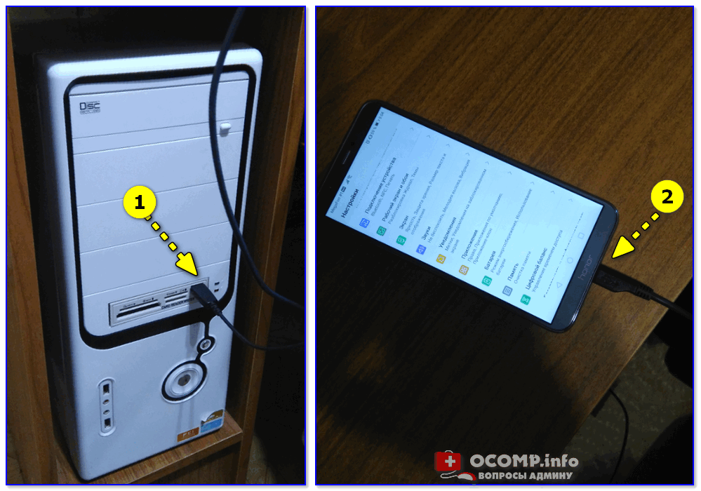 Подключаем к USB-порту компьютера телефон (проверяем, чтобы были включены оба устройства).
