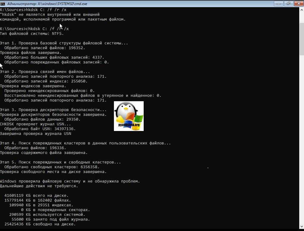chkdsk C: /f /r /x