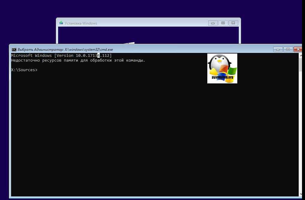 так же если вы тут нажмете сочетание клавиш Shiftе+F10, то у вас появится командная строка WinPE.