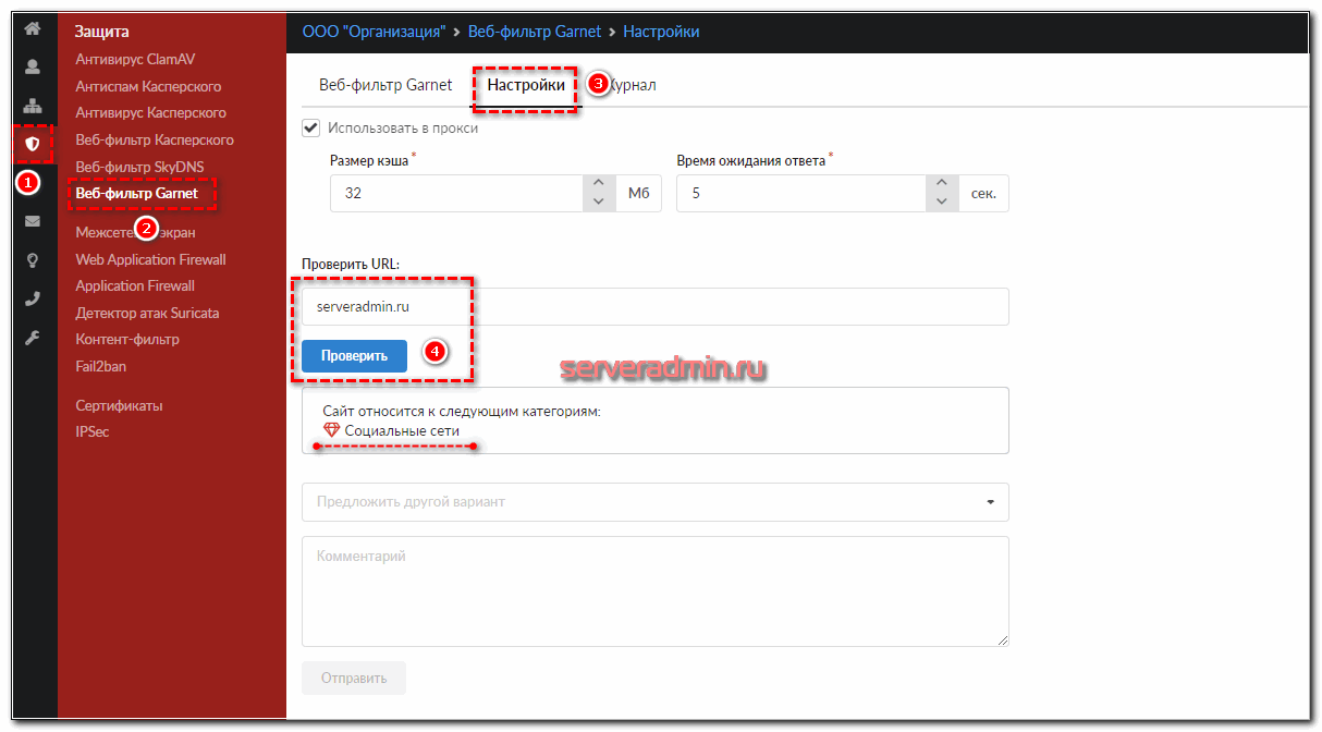Для того, чтобы проверить, к какой категории трафика будет отнесён тот или иной сайт, можно выполнить проверку. Для этого зайдите в настройки Веб-фильтра Garnet и проверьте url.