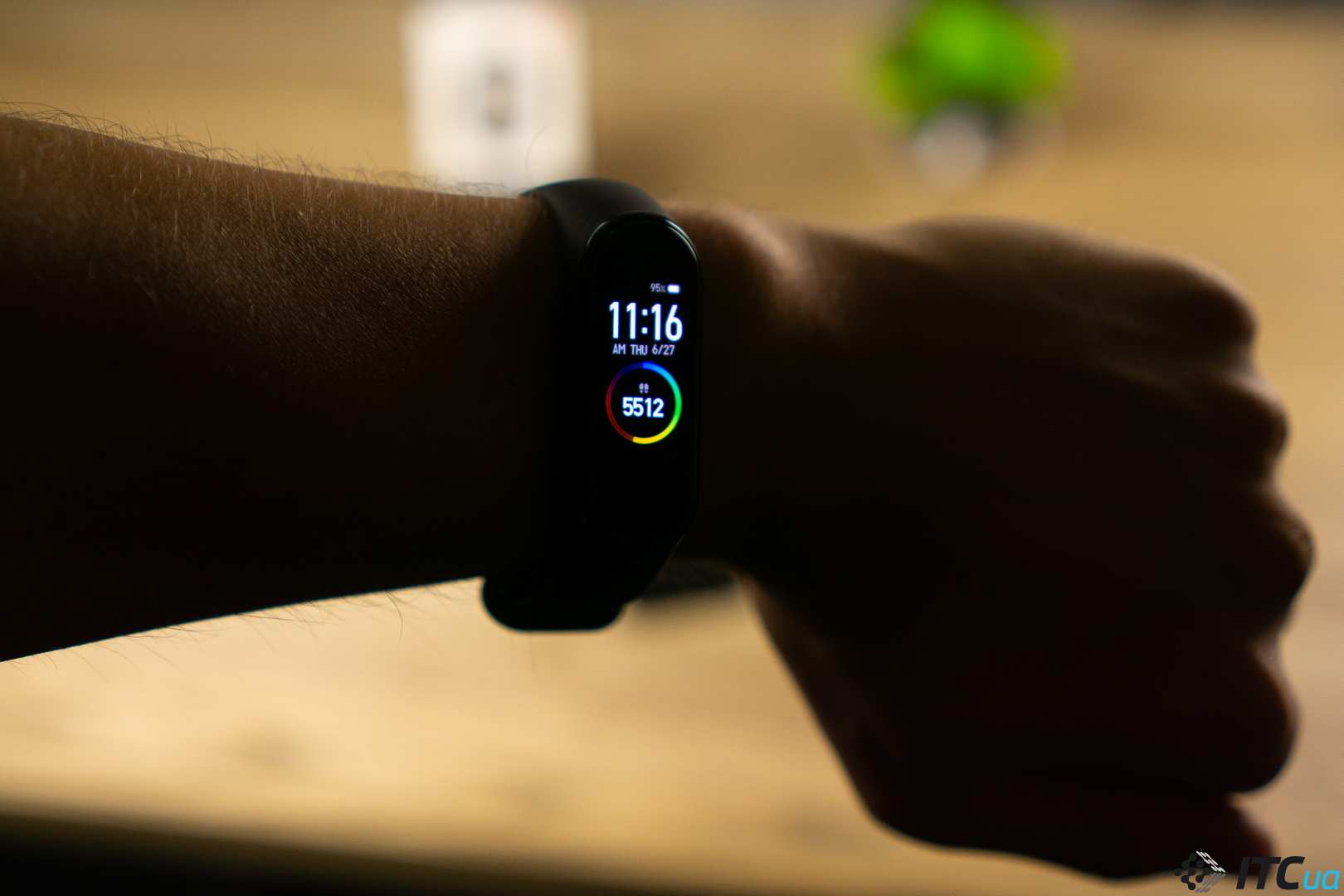 Картинка на дисплее сочная, яркая, насыщенная и почти не зернистая. Под такой экран в Xiaomi перерисовали меню и каждый пункт теперь выполнен в своем цвете. Как и в Mi Band 3, дисплей сенсорный. Палец скользит по нему легко, меню отзывчивое, пользоваться приятно.