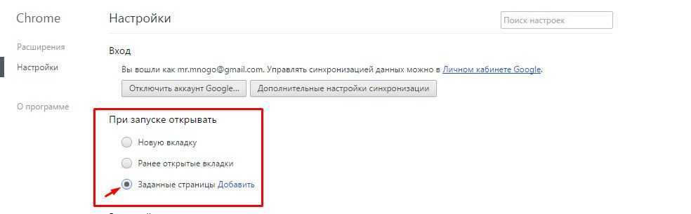 Шаг 3. Найдите заголовок «При запуске», который, как следует из его названия, определяет, что же именно происходит при запуске браузера. Выберите подпункт «Открыть определённую страницу или несколько страниц». Далее нажмите на «Задать страницы», что находится рядом с этим подпунктом.