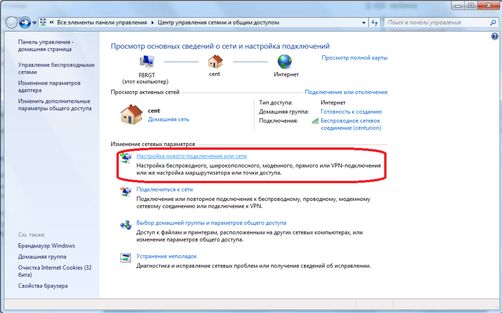 - В подразделе «Изменение сетевых параметров» выбрать «Настройка или создание новой сети или подключения».