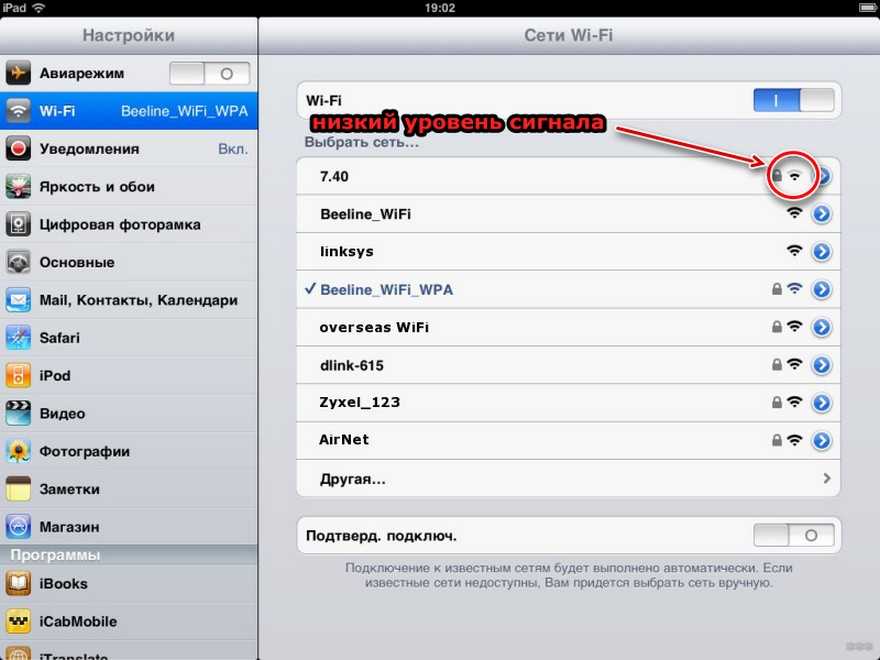 Если после всех вышеописанных действий, доступ к Интернету то появляется, то исчезает, попробуйте побродить с iPad по дому. Если в одном месте прием лучше, чем в другом, значит сигнал сети недостаточно сильный.