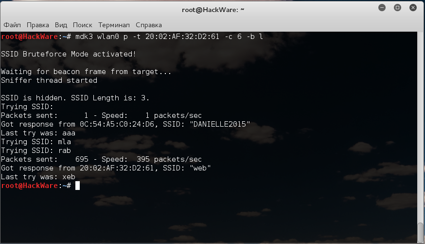 Получение имени скрытой сети Wi-Fi без подключённых клиентов (использование mdk3)