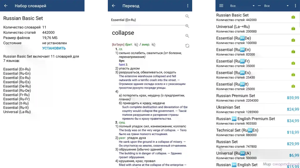 Словари этого разработчика считаются самыми лучшими. Отдельное приложение со словарем доступно на данный момент только для яблочных смартфонов.