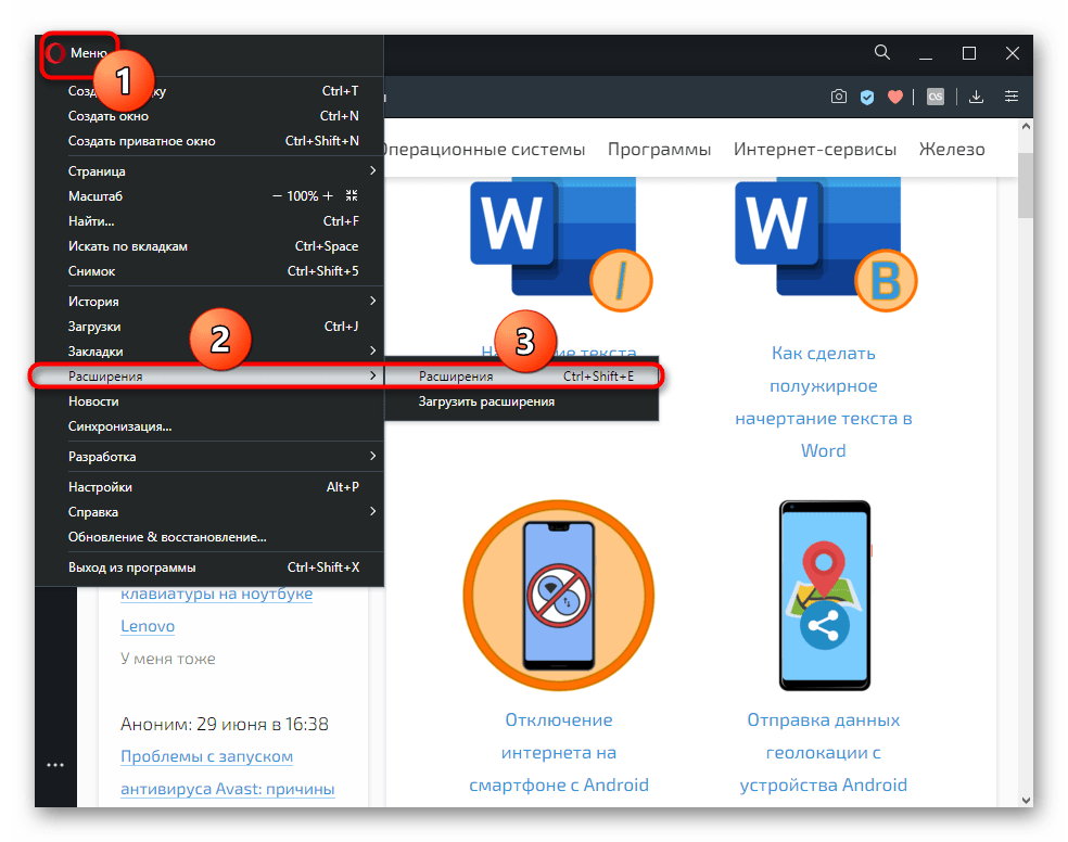 - Через меню перейдите в «Расширения».