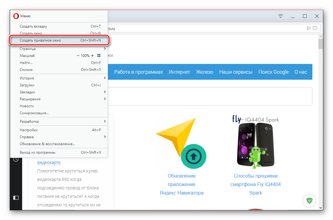 Нажимаем на значок Opera в левом верхнем углу, выбираем пункт Создать приватное окно. Запустить режим приватного просмотра в Opera также можно комбинацией клавиш Ctrl+Shift+N. Для выхода из приватного режима достаточно закрыть окно.