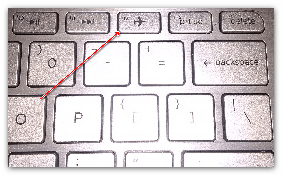 В новейших ноутбуках Dell присутствует отдельный переключатель для режима «В самолёте». Поэтому, если эта функция не отключается системными средствами, проверьте положение переключателя. Также в некоторых ноутбуках за включение этой возможности отвечает отдельная клавиша либо комбинация клавиш, обычно FN в сочетании с одной из F-ряда. Внимательно изучите клавиатуру ноутбука – нужная обозначена иконкой самолёта. Если же тумблер находится в положении «Отключено», а нажатие клавиш результата не приносит, налицо неполадка. Попробуйте выполнить следующие действия: