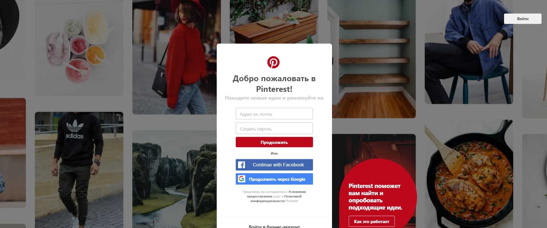 Социальный фотохостинг, пользователи которого загружают изображения в соответствующие коллекции, делятся фотографиями с другими людьми. Добавленные изображения именуются «кнопками», а коллекции – «досками».