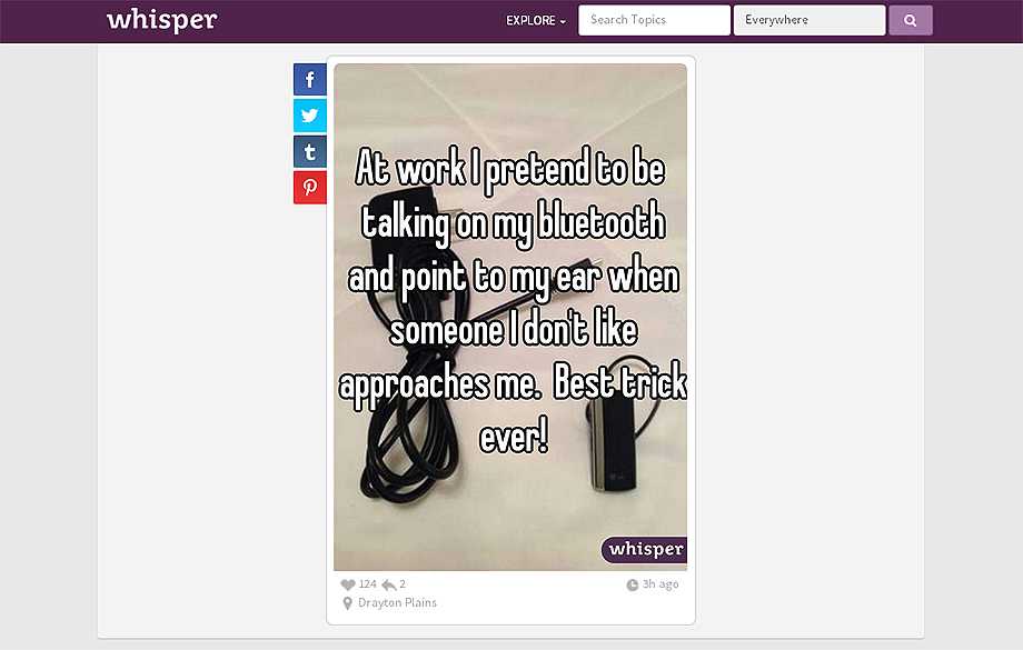 Whisper – это бесплатное приложение для пользователей iOS и Android, которое позволяет бесплатно выкладывать в интернет самые разные интимные секреты. Разумеется, анонимно.