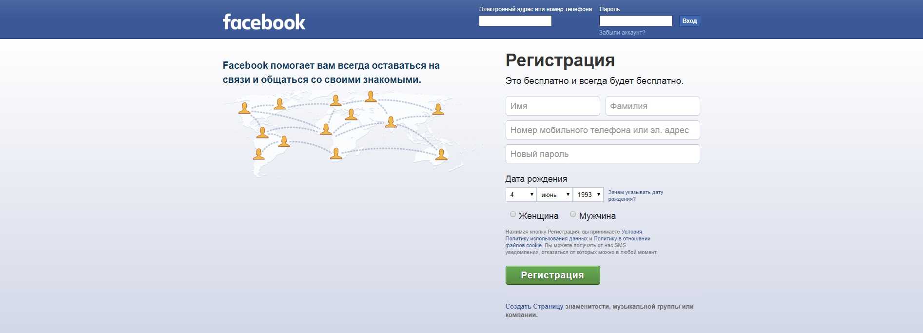 - В 2006 году в Фейсбуке появилась возможность зарегистрироваться для всех желающих. Главное условие – возраст старше 13 лет.