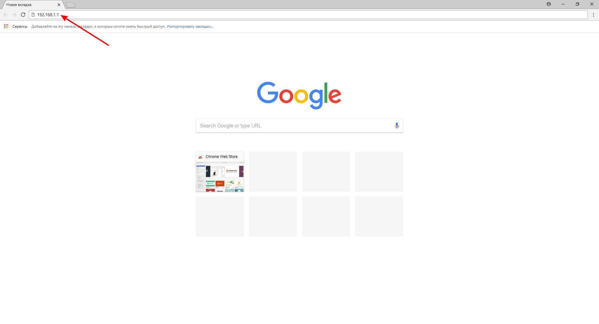 Возьмите ваше устройство, которое уже подключено к роутеру через сетевой кабель или Wi-Fi. Подойдёт любое: компьютер, ноутбук, планшет, смартфон, холодильник и т.п. Откройте в нем любой установленный браузер. Затем в строке для ввода адреса сайта введите 192.168.1.1 либо таким образом http://192.168.1.1. Второй вариант даже предпочтительней. И нажмите клавишу Enter.