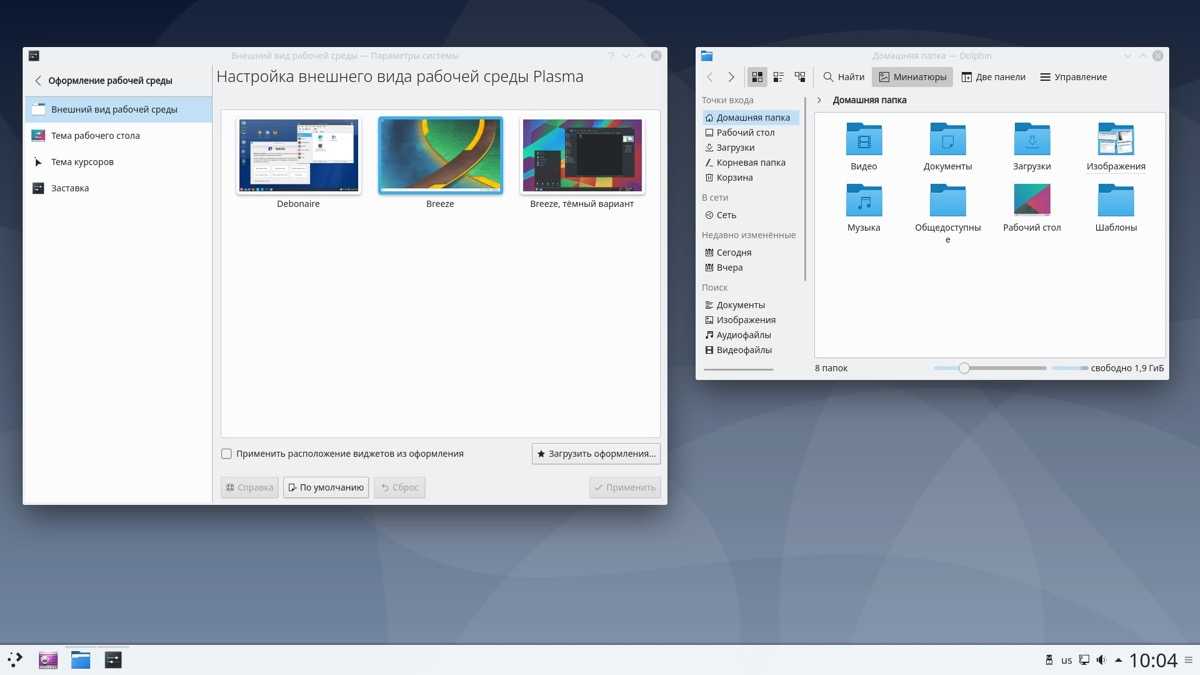 - KDE — современный и красивый рабочий стол. Гибкая настройка позволяет сделать его каким угодно;