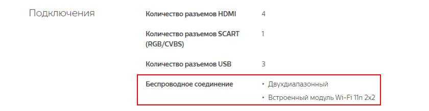 Решение #1: проверяем наличие Wi-Fi в технических характеристиках телевизора
